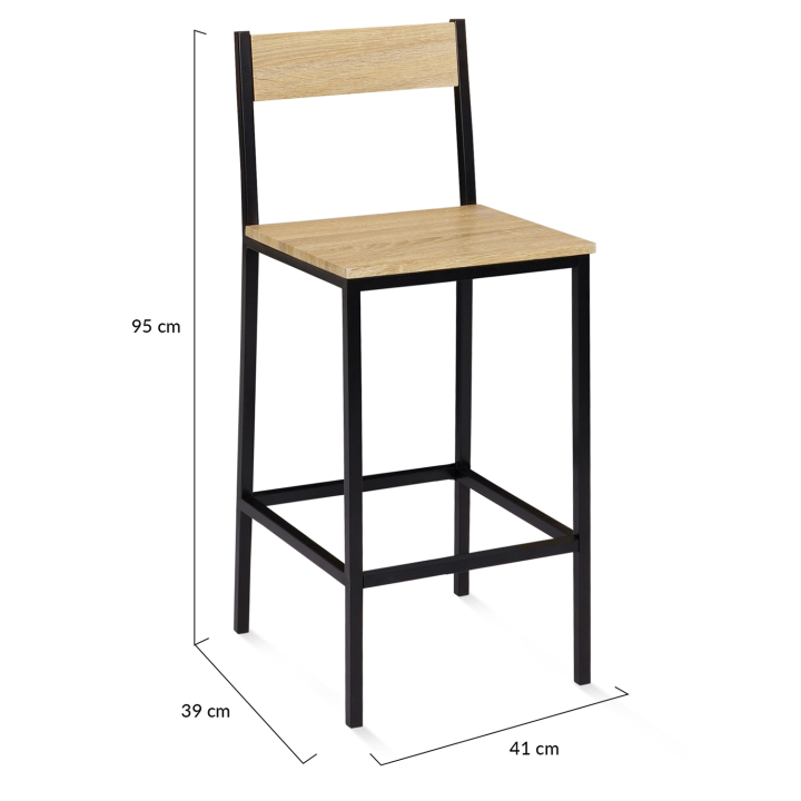 Industrielle Barstühle aus Metall und Holz mit Rückenlehne x4